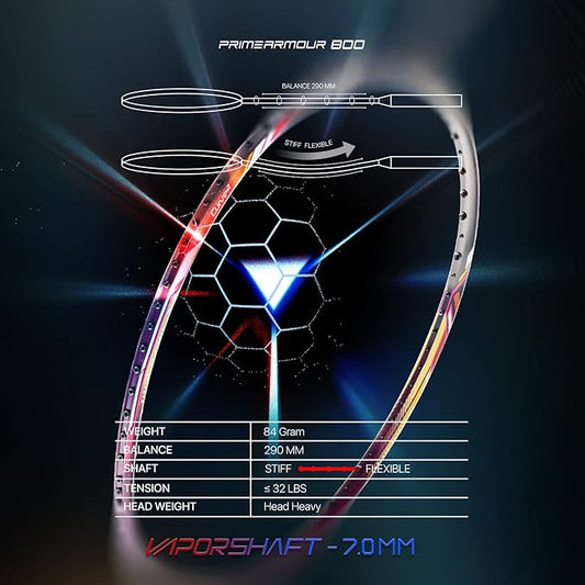 Hundred PRIMEARMOUR 800 Carbon Fibre Strung Badminton Racket with Full Racket Cover