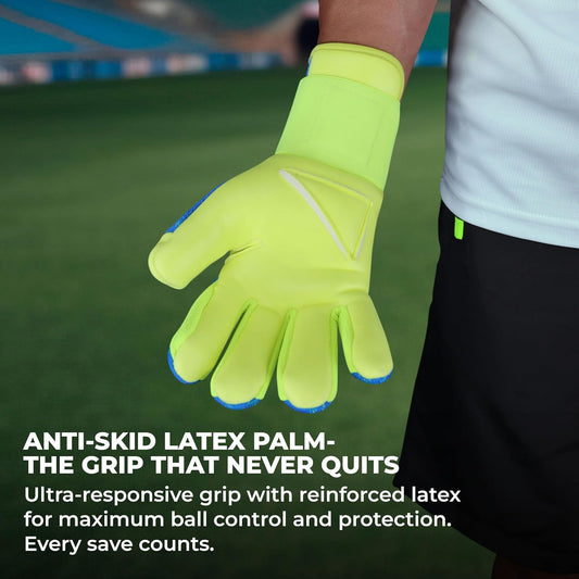 NIVIA Latex Ashtang Goalkeeper Gloves, Large (SkyBlue/F.Green)