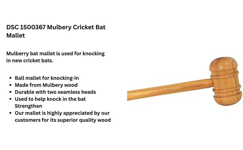 - Knocking-In Tool: The DSC 1500367 Mulberry Cricket Bat Mallet serves as a valuable tool for knocking in cricket bats
