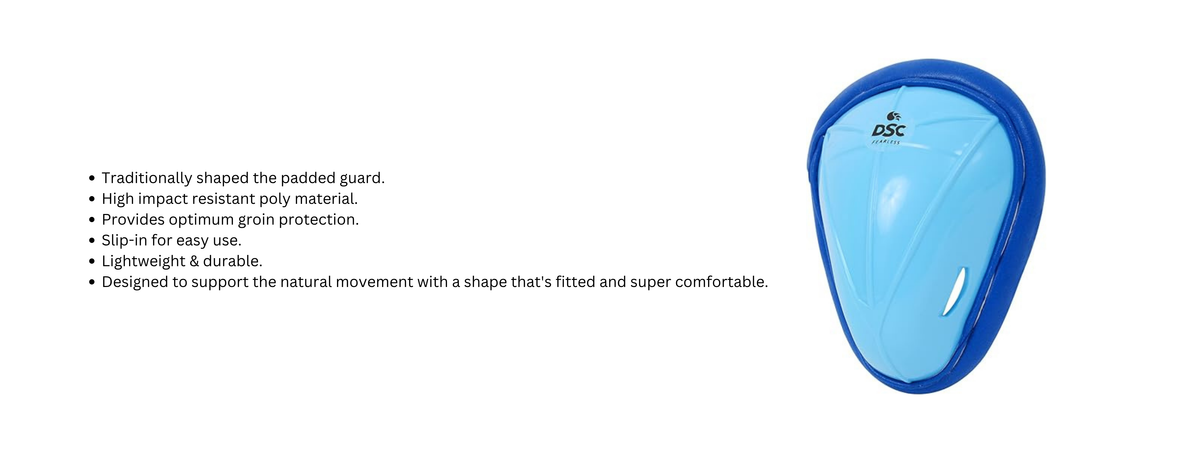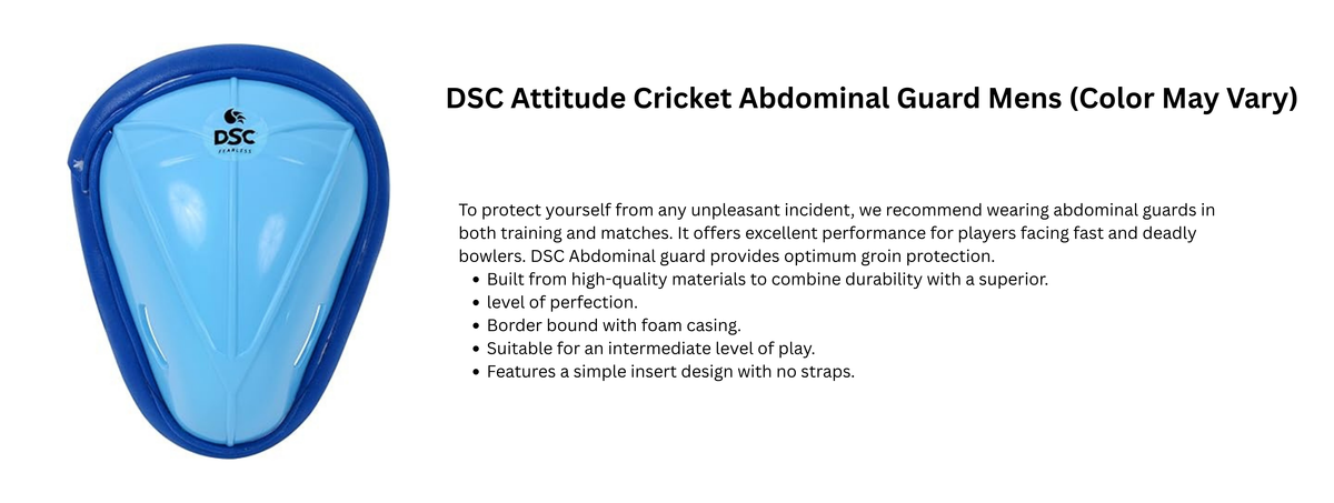 - It offers excellent performance for players facing fast and deadly bowlers. DSC Abdominal guard provides optimum groin protection.