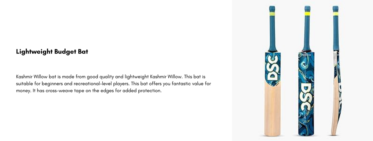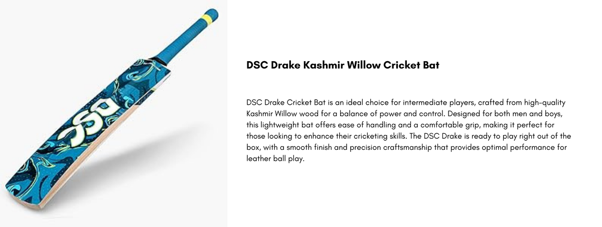 - KASHMIR WILLOW CONSTRUCTION: The DSC Drake Cricket Bat is meticulously crafted from high-quality Kashmir Willow, providing a perfect blend of performance and durability for both men and boys.