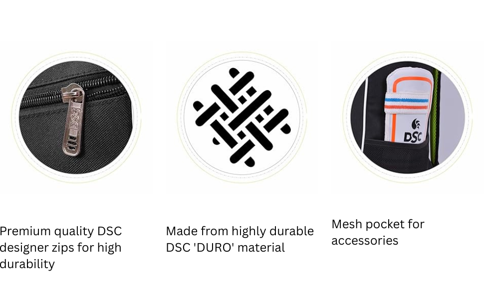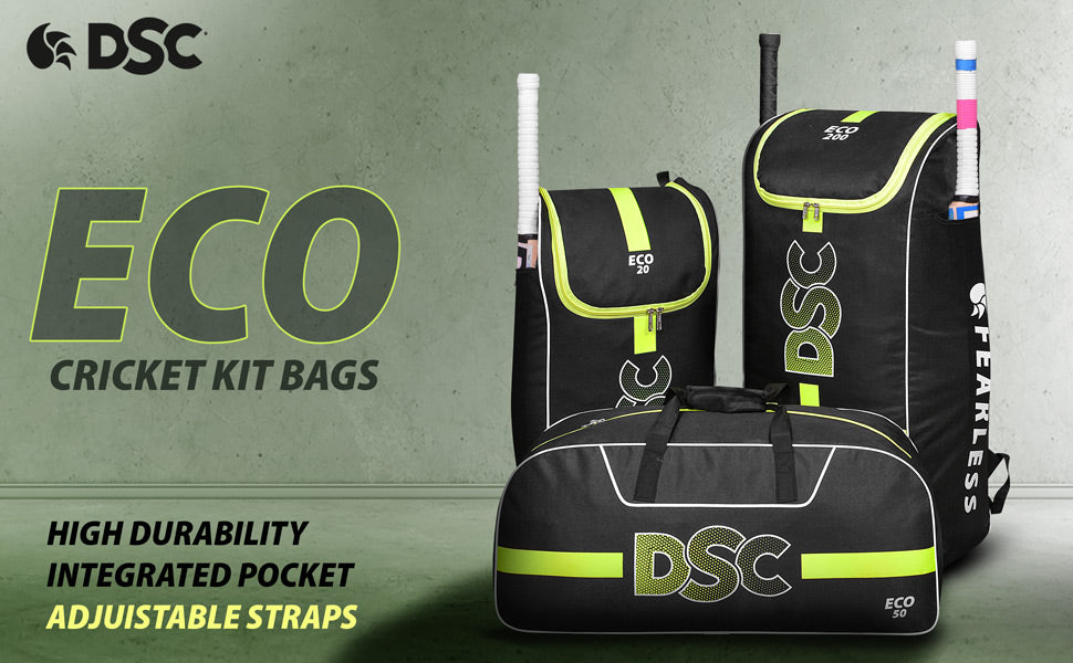 DSC Eco-20 Cricket Kit Bag | Color: Black & Green | Size: 28L x 13.5 Bx 6.5 H Inches | Material: Durable Duro | Volume: 57 Litres | Anti-Scuff Corner Protection | Durable & Classy