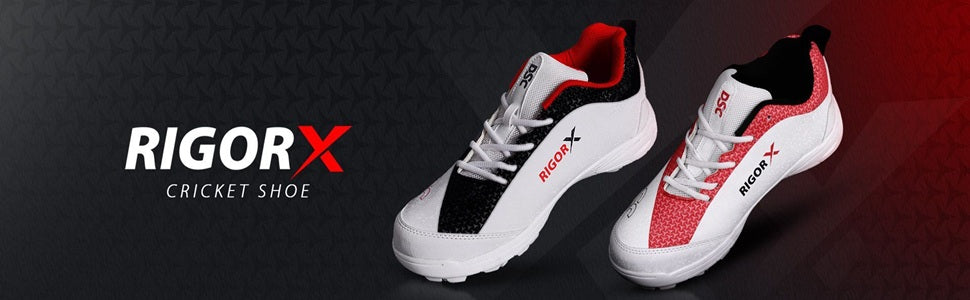 DSC Rigor X Cricket Shoes for Mens & Boys | Color: White & Red | Size: 3UK/4US/37 EU | Lightweight | Breathable Mesh