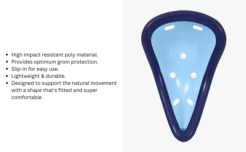 - The guard has a high impact poly protector and is shaped for optimum groin protection