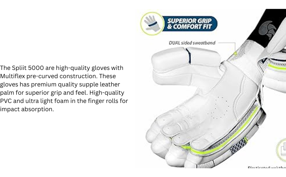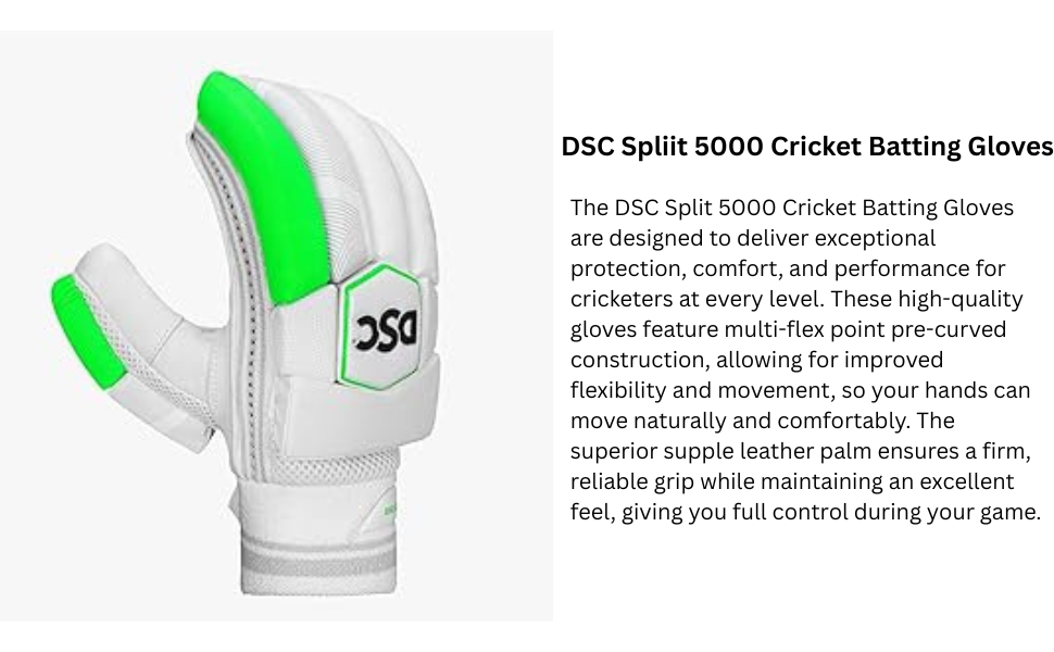 DSC Spliit 5000 Cricket Batting Gloves|Pre-Curved Fingers |High-Quality Leather Palm | Superior Frip and Feel | Airflow Gusset for Ventilation
