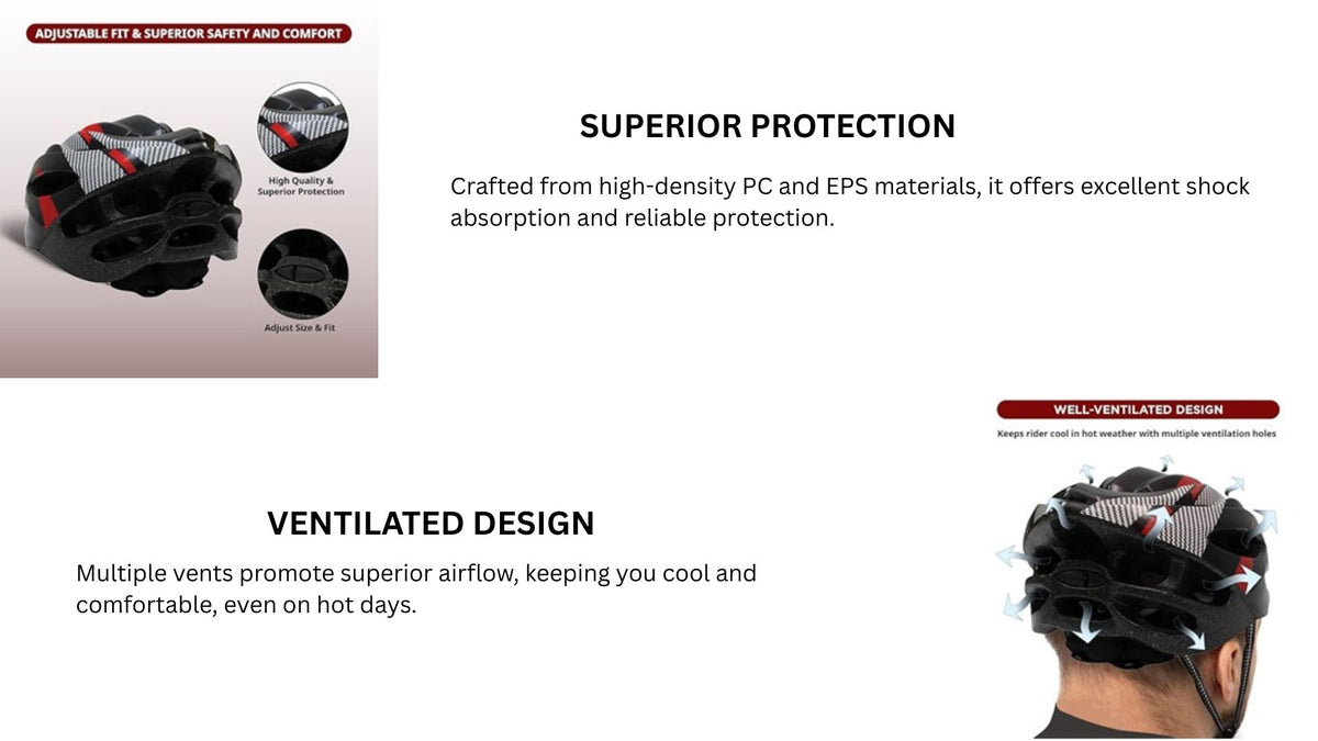 - VENTILATION DESIGN: The helmet features multiple ventilation holes that facilitate excellent airflow from the front to the back. This design helps keep the rider cool, especially on hot days, enhancing overall comfort during cycling.