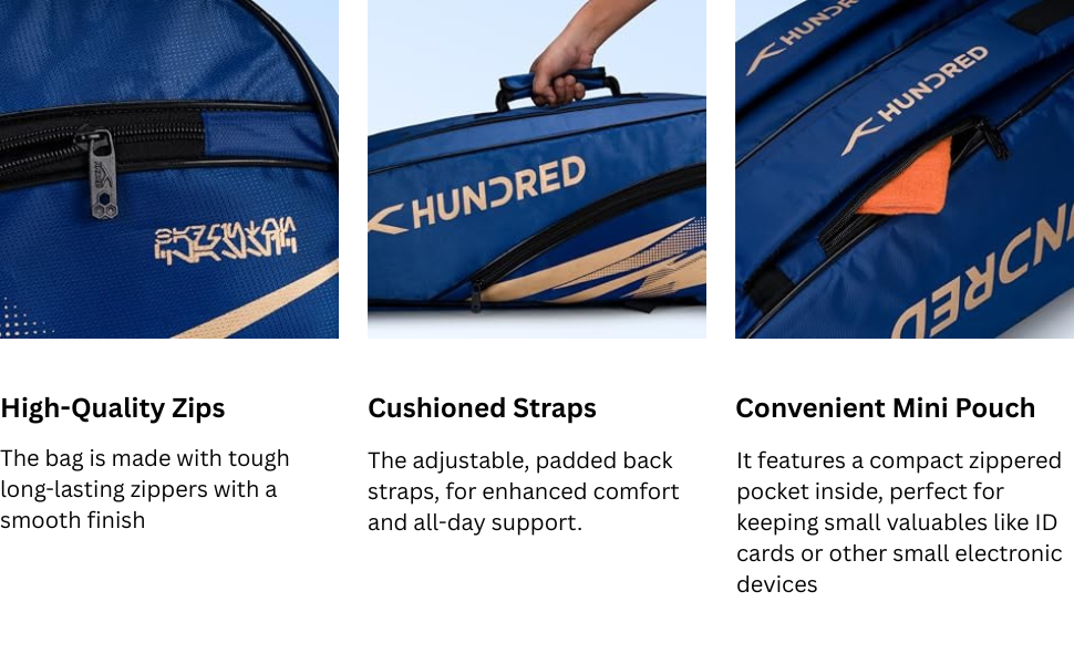 Hundred Cosmogear Badminton Kit-bag | Double Zipper | Bag with Front Zipper Pocket | Material: Polyester | Padded Back Straps | Easy-Carry Handle
