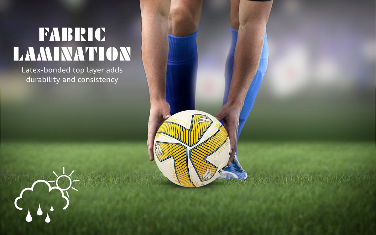 - Latex Bladder Core with Bonded Fabric Lamination Mid-layer: The footballs core is made of latex and includes a bonded fabric lamination mid-layer, contributing to its overall resilience and structural integrity.