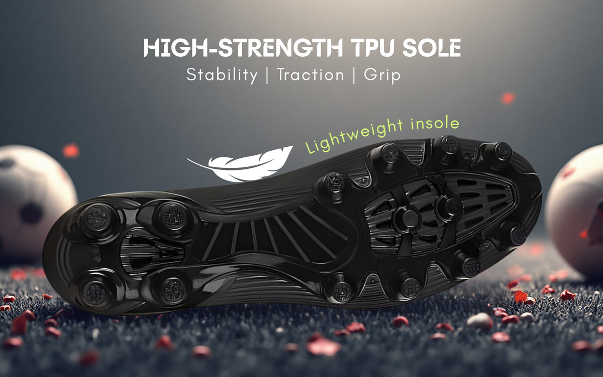 - High Shear Strength TPU Sole: Engineered with high shear strength, the TPU sole delivers superior stability and traction, ensuring a secure platform for athletes during various movements on the field.