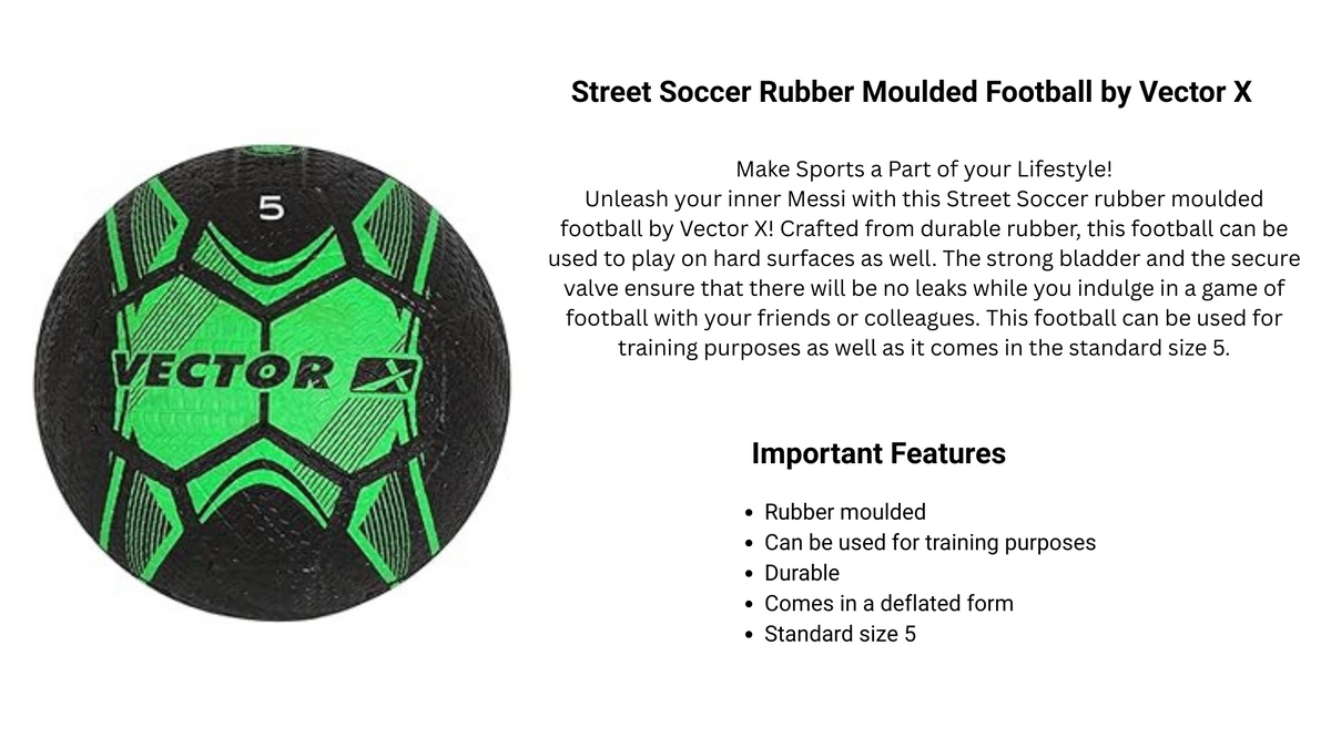 Vector X Street Soccer Rubber Moulded Stitched Football|Training|Match|Sports|Playing|Practice|Indoor & Outdoor Ball|Durable & Water-Resistant Soccer Ball for Youth, Men, Adult
