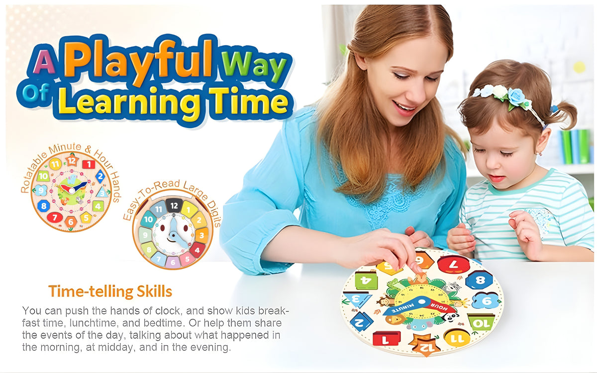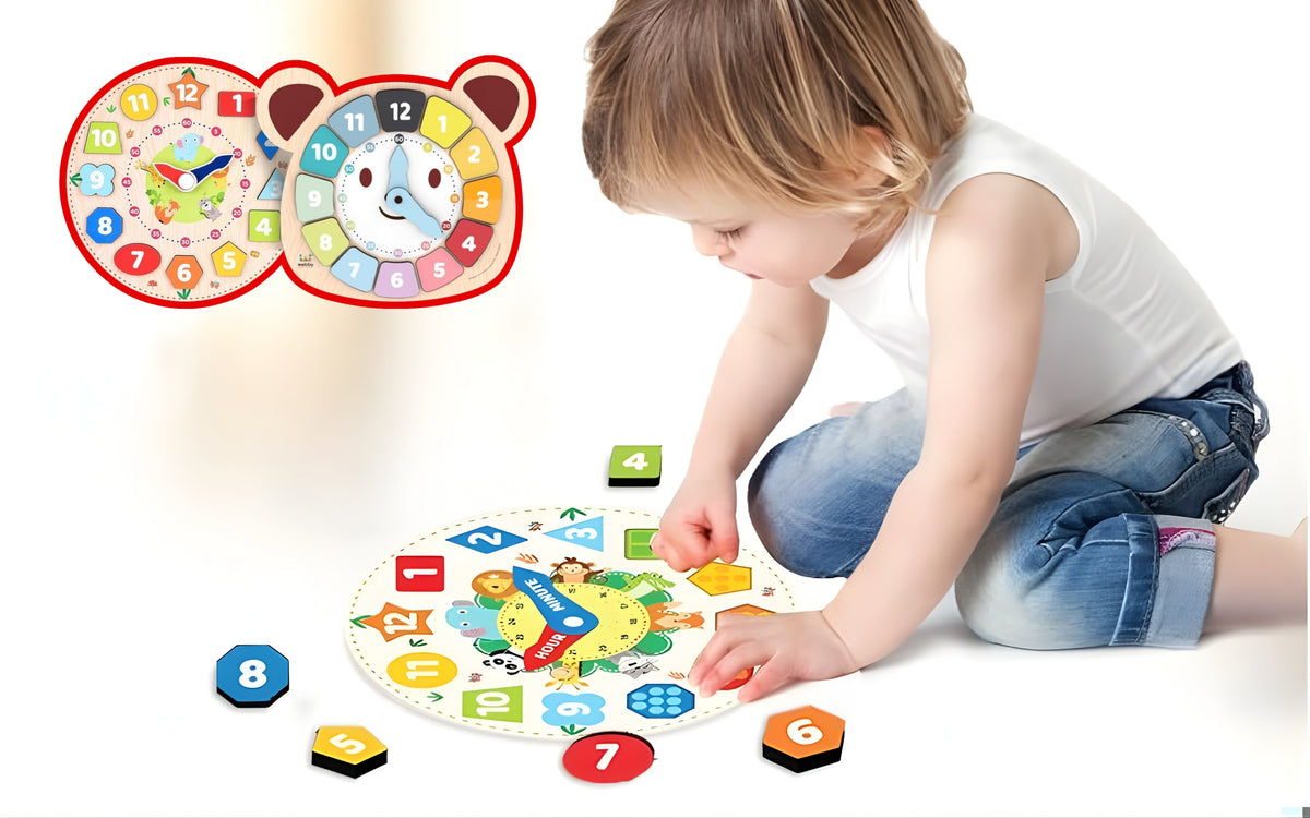 Webby Wooden Educational Learning Clock Toys for Kids – Teach Time, Shapes & Colours | Montessori Early Learning Toy | Fun Educational Gift for Toddlers & Preschoolers pack of 2